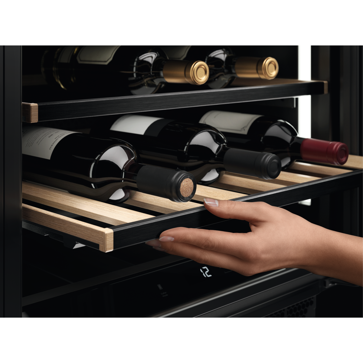 Mit den ausziehbaren Holzablagen kommen Sie leichter an Ihre Weine heran.