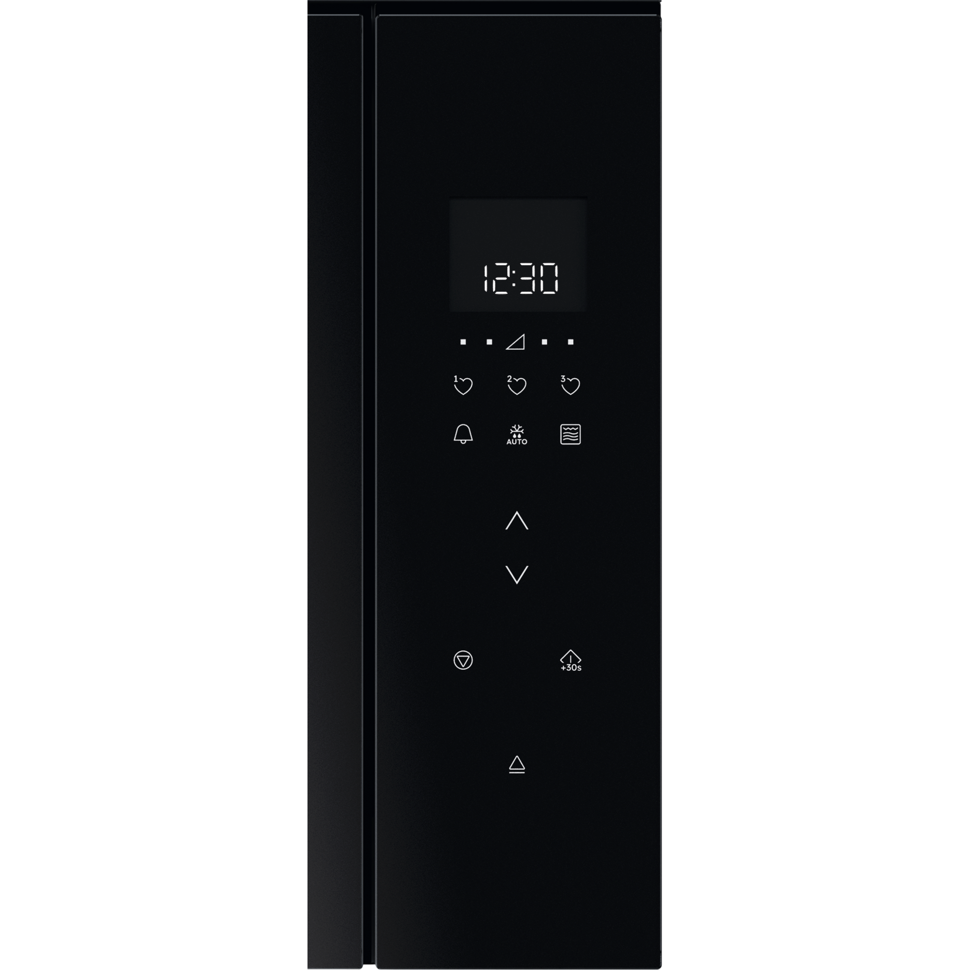 Das minimalistische Design der Mikrowelle in schwarzer Hochglanzoptik passt zum Backofen und anderen AEG Geräten in deiner Küche.