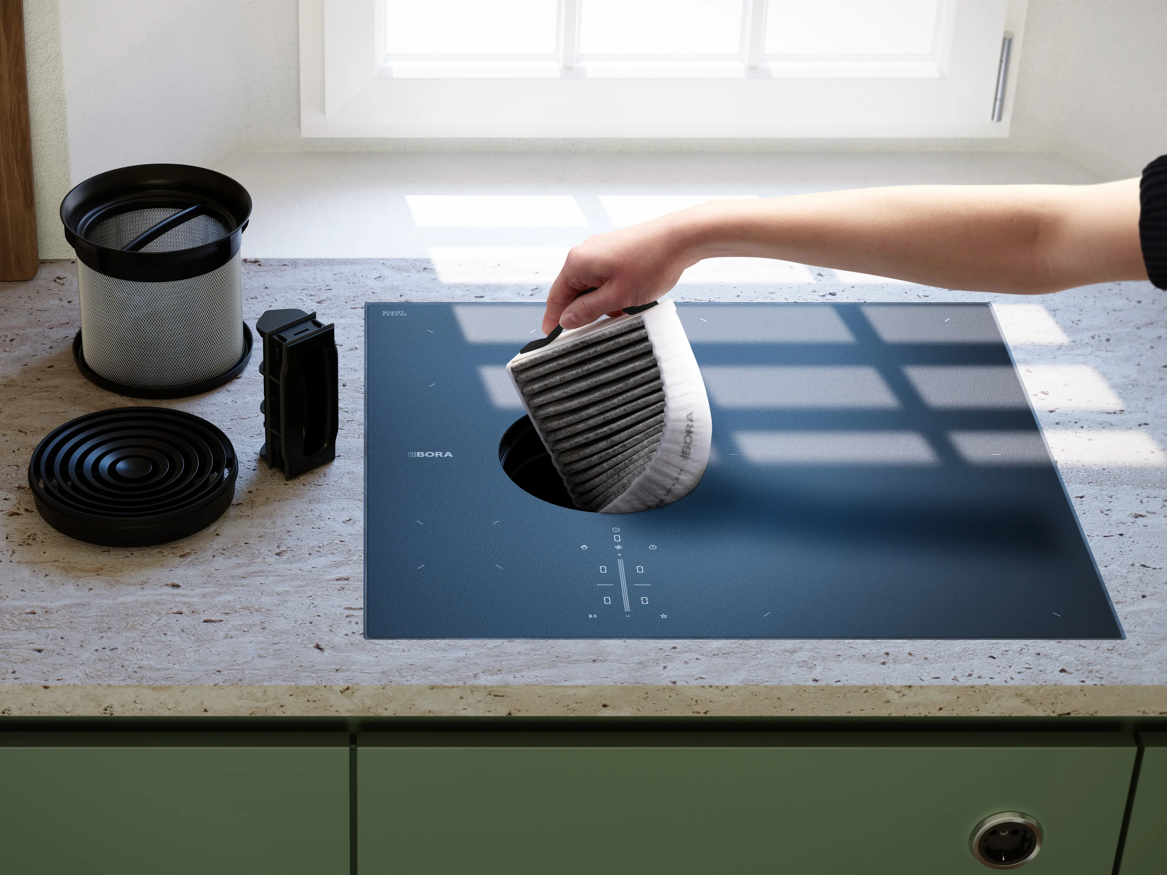 Der BORA Aktivkohle-Geruchsfilter kommt überall dort zum Einsatz, wo im Umluftbetrieb eine effektive Geruchsneutralisation gefragt ist. Als eSwap Ersatzfilter lässt er sich werkzeuglos austauschen und garantiert eine konstant hohe Abzugsleistung.