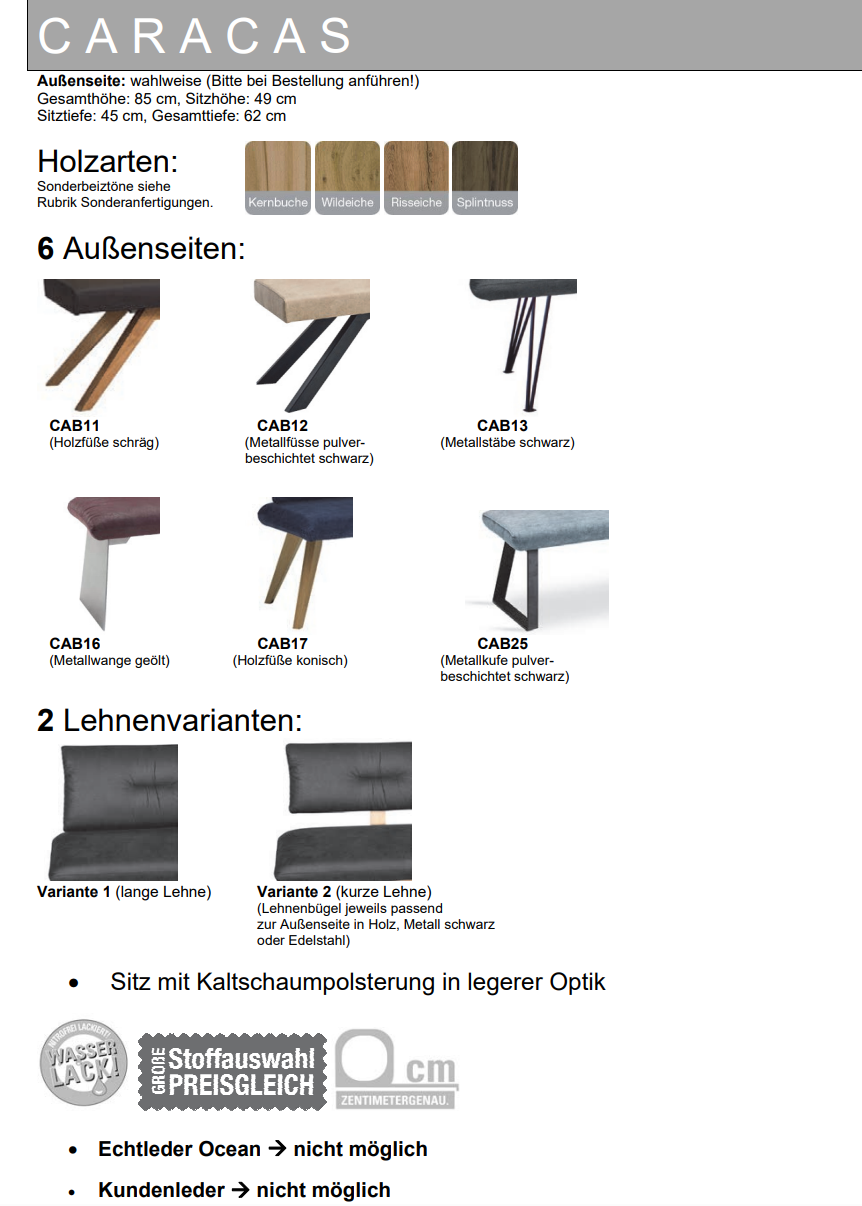 - Außenseite wahlweise/Lehne wahlweise lange Lehne, kurze Lehne