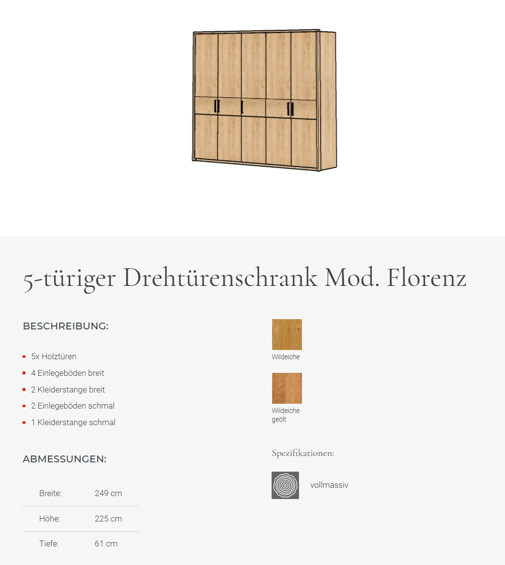 Hoteleinteilung für Drehtürenschrank Florenz in Wildeiche wird zerlegt geliefert