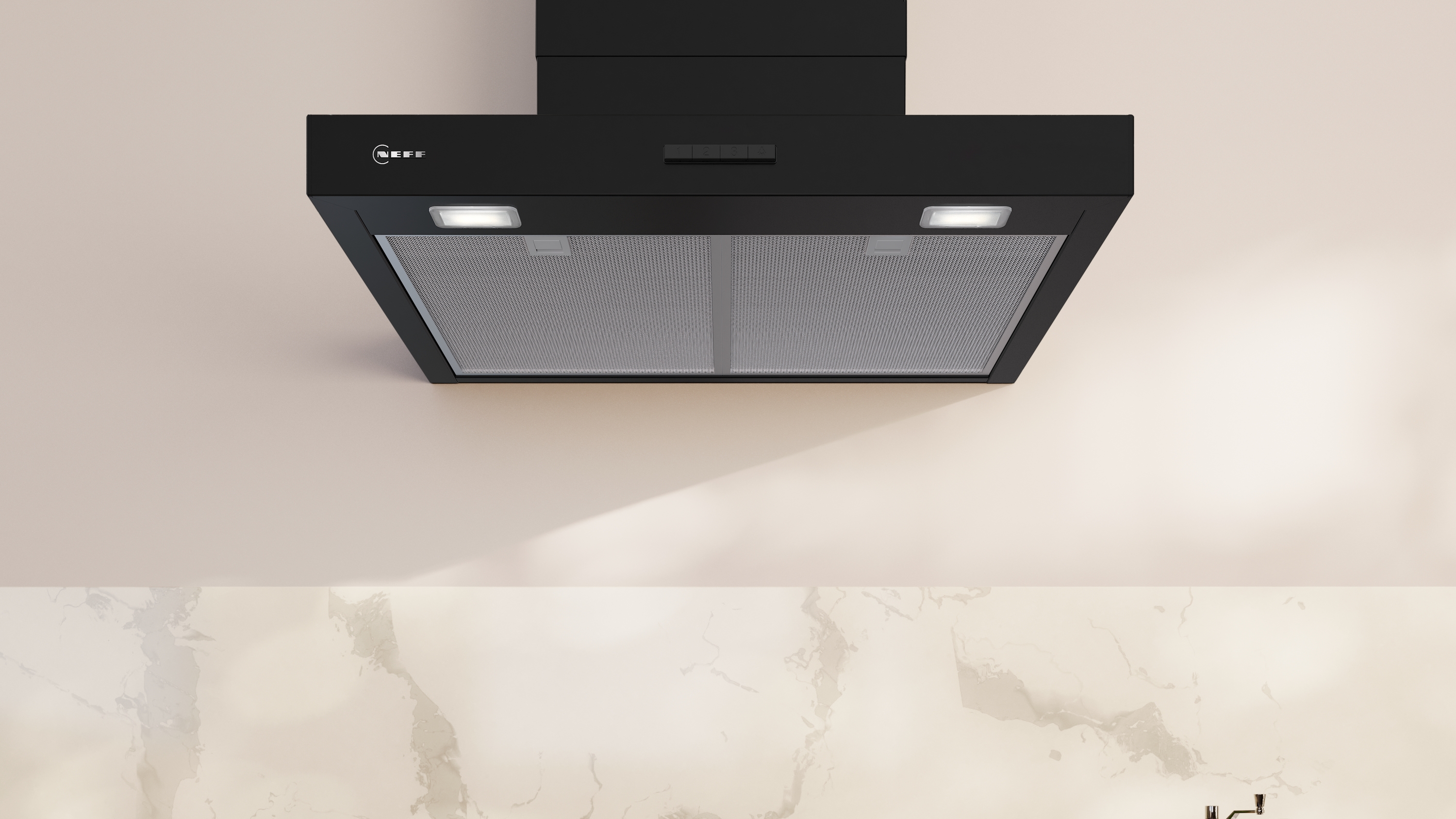 Drucktasten Bedienung: mühelose Bedienung des Dunstabzugs mit echten Drucktasten.