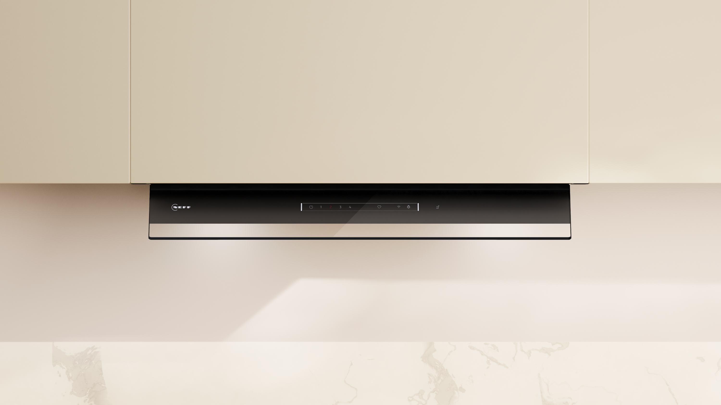 - Smart Home Trigger über die Favoritentaste (verfügbar mit verbundenem Home Connect Konto): Öffne das smarte Universum deines Dunstabzugs (Partnerdienst erforderlich).