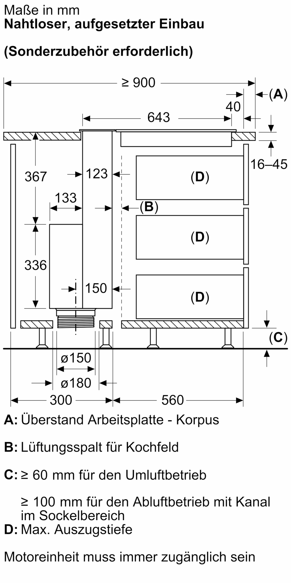- Eine Kombination mit Gaskochfeldern ist nicht möglich.