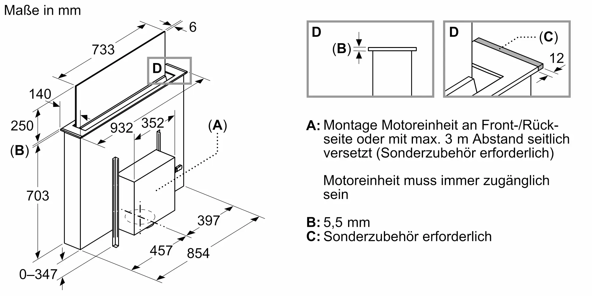 - Zur flexiblen Installation des Motors ist ein Sonderzubehör erforderlich