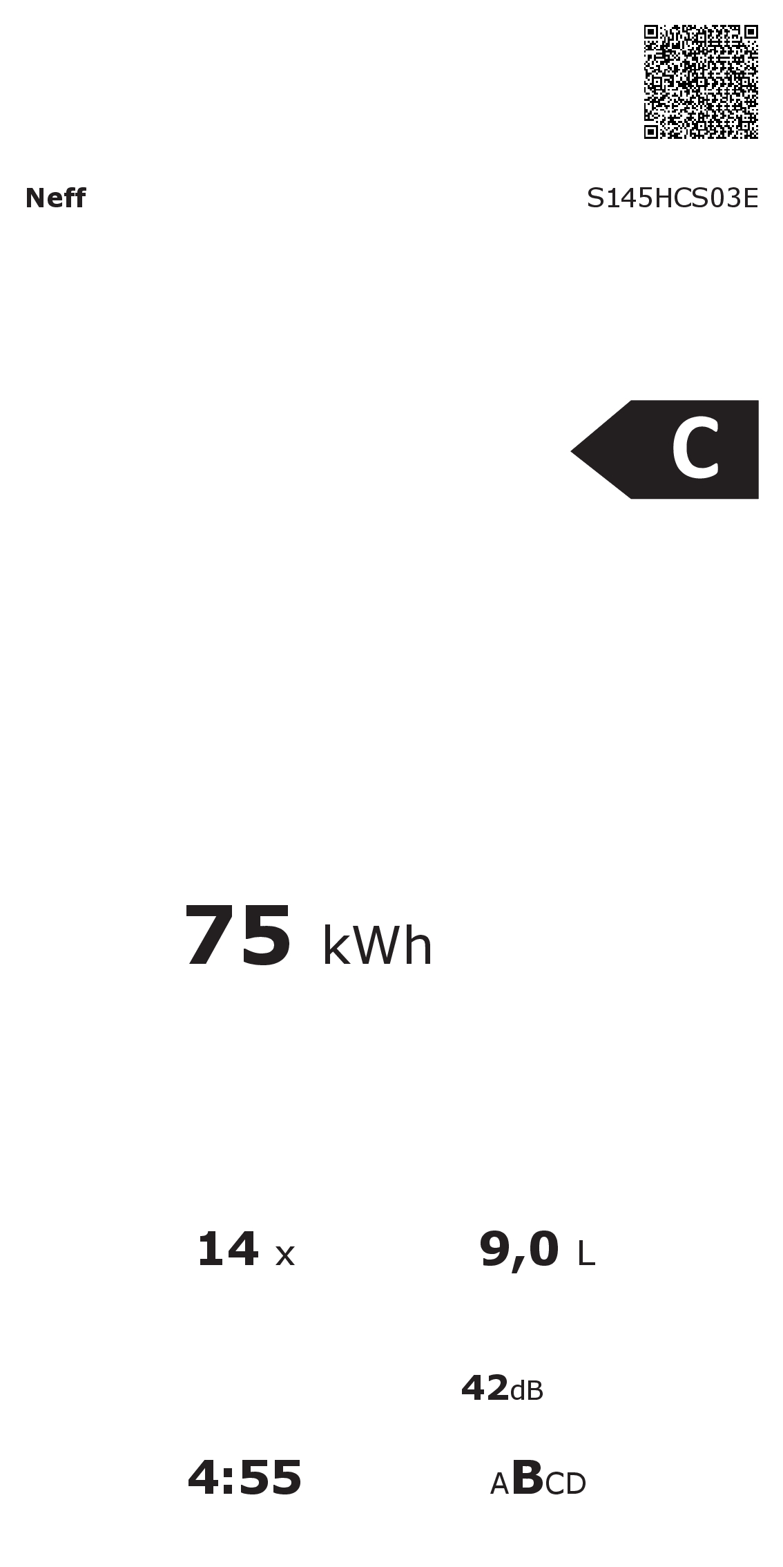 | Energielabel im elektronischen Format: | https://media3.neff-international.com/Documents/energylabel/de-AT/S145HCS03E.pdf |