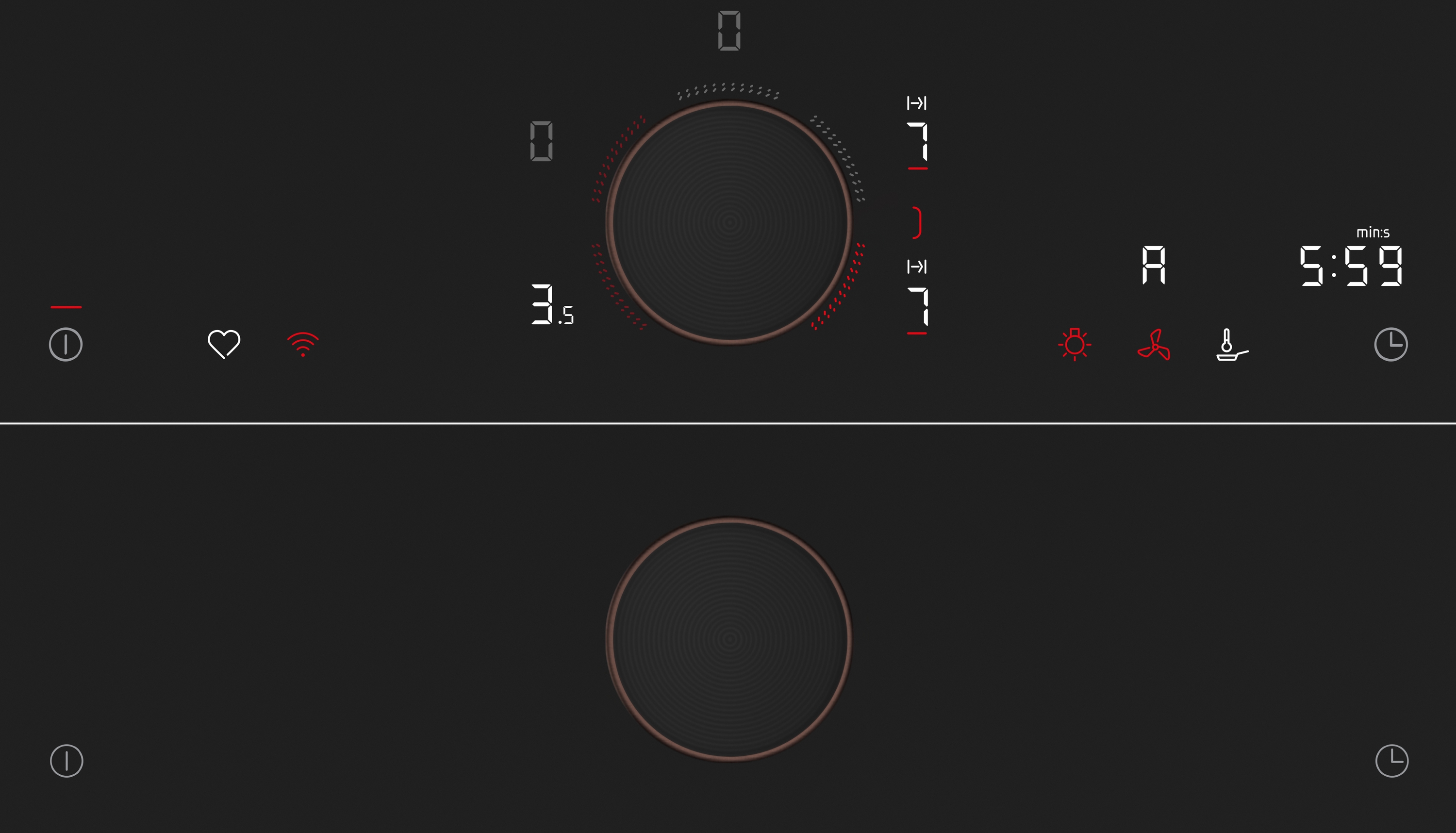 - Licht-Dialog mit zweifarbiger Anzeige (weiß/rot): Auf der zweifarbigen Anzeige sehen Sie direkt, welche Kochzone heizt und welche Funktion in Betrieb ist.