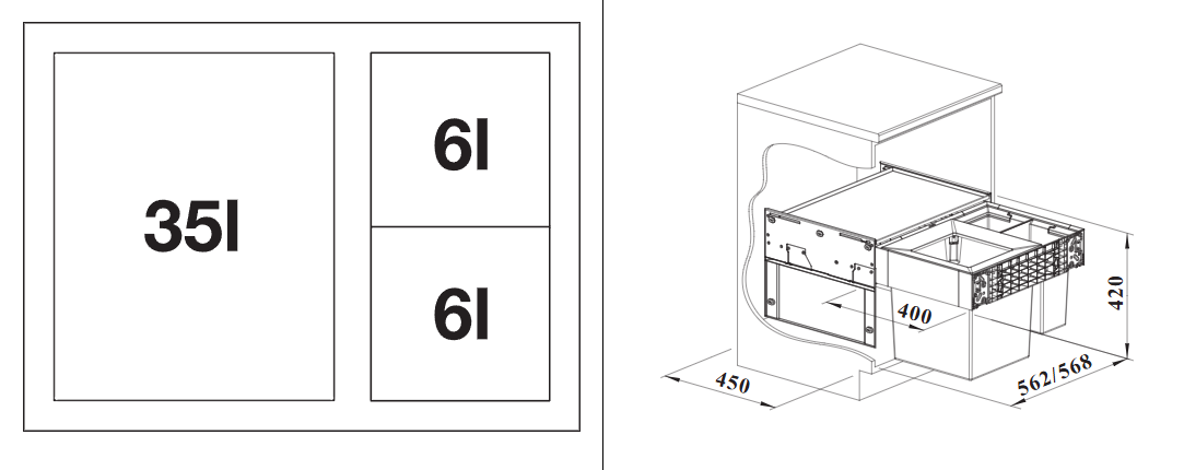 — 2 x 6 l und 1 x 35 l Behälter mit Beutelhalterung und