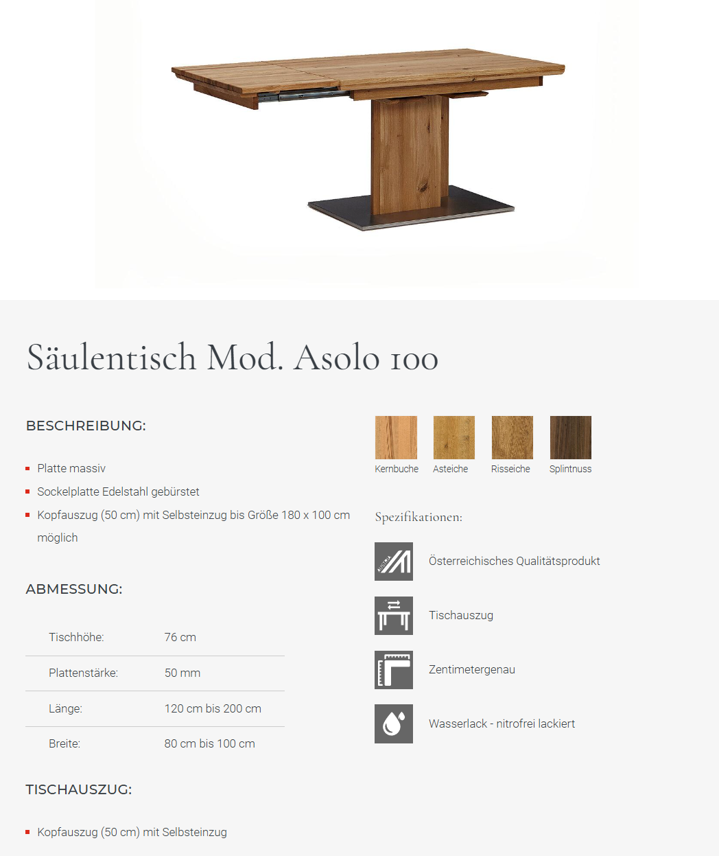 | Tischhöhe: | 76 cm |