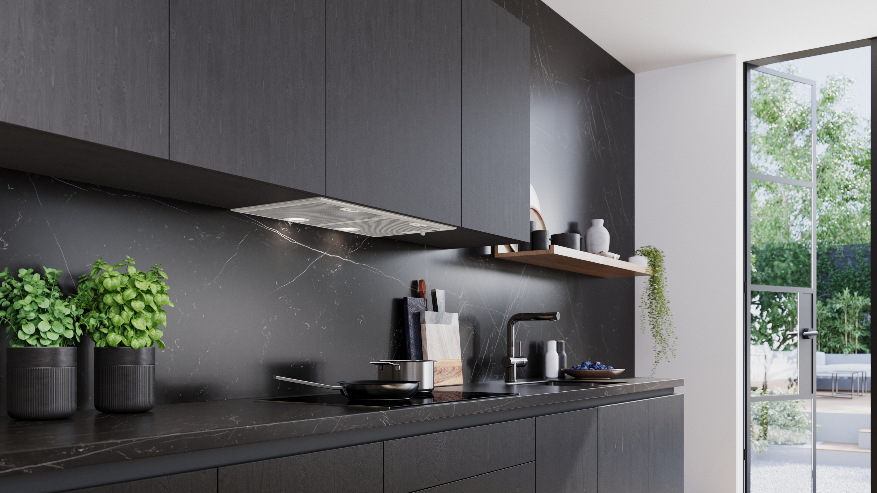 Der Lüfterbaustein bietet Gestaltungsfreiraum - für die Montage an der Wand oder über einer Kochinsel.