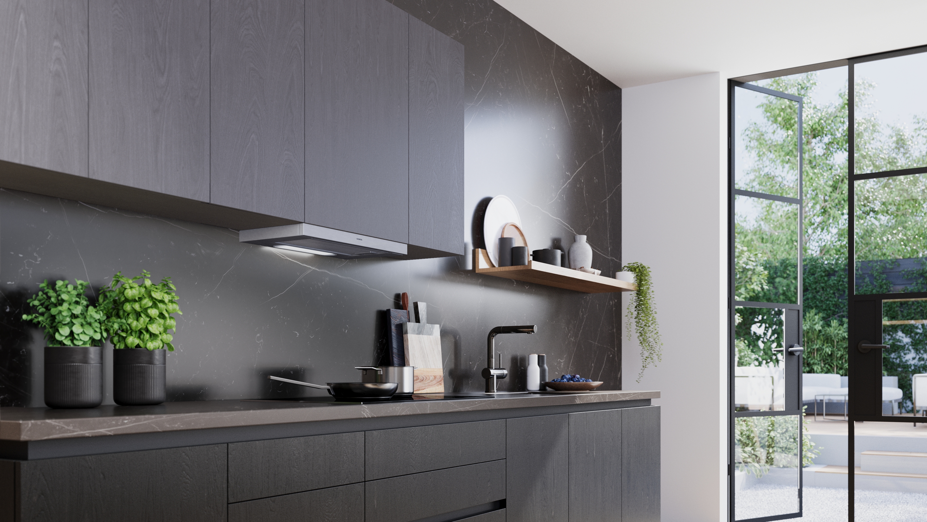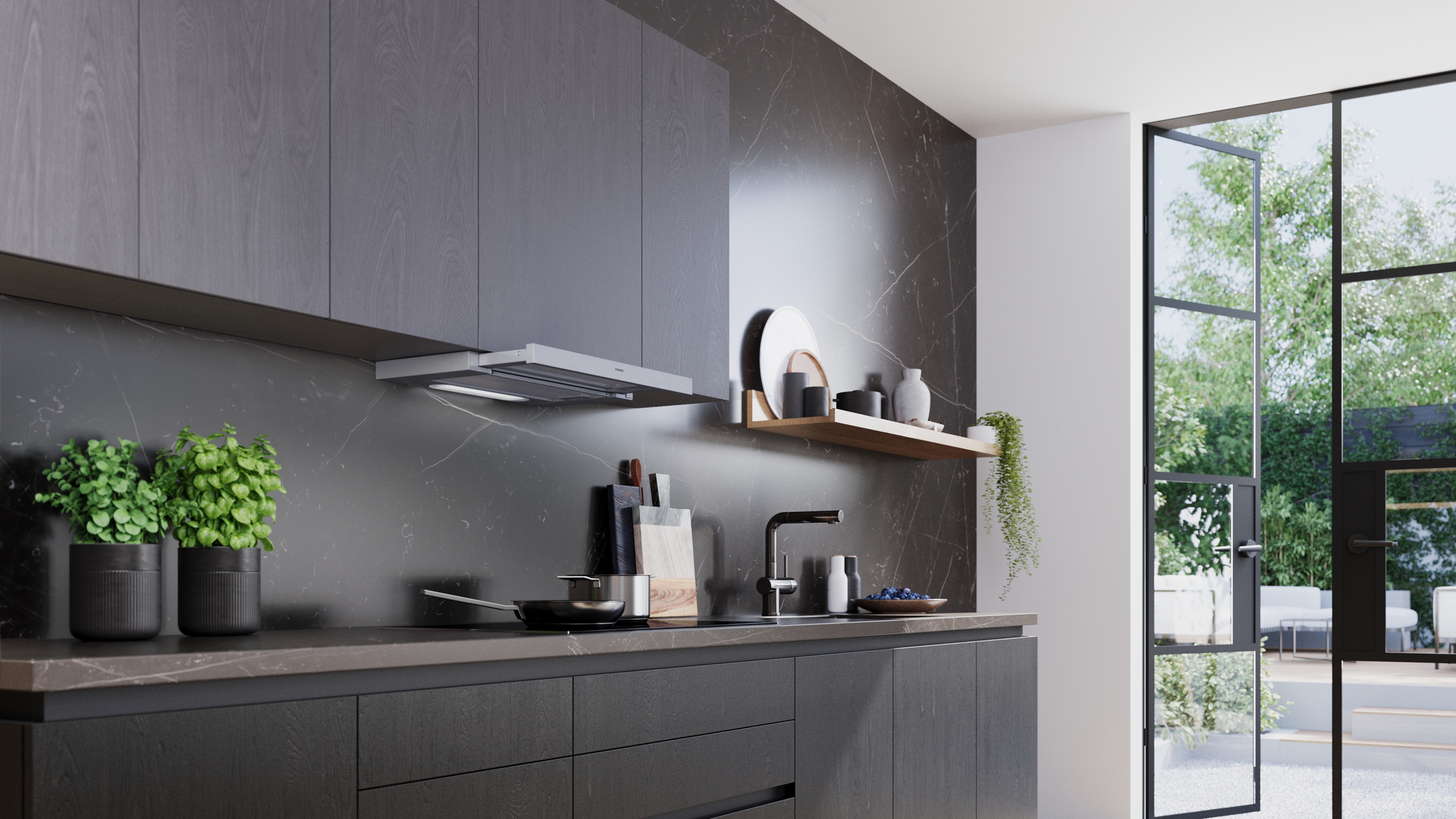 Die Flachschirmhaube verschwindet praktisch in deinem Oberschrank und sorgt so für eine elegante Küchenfront.