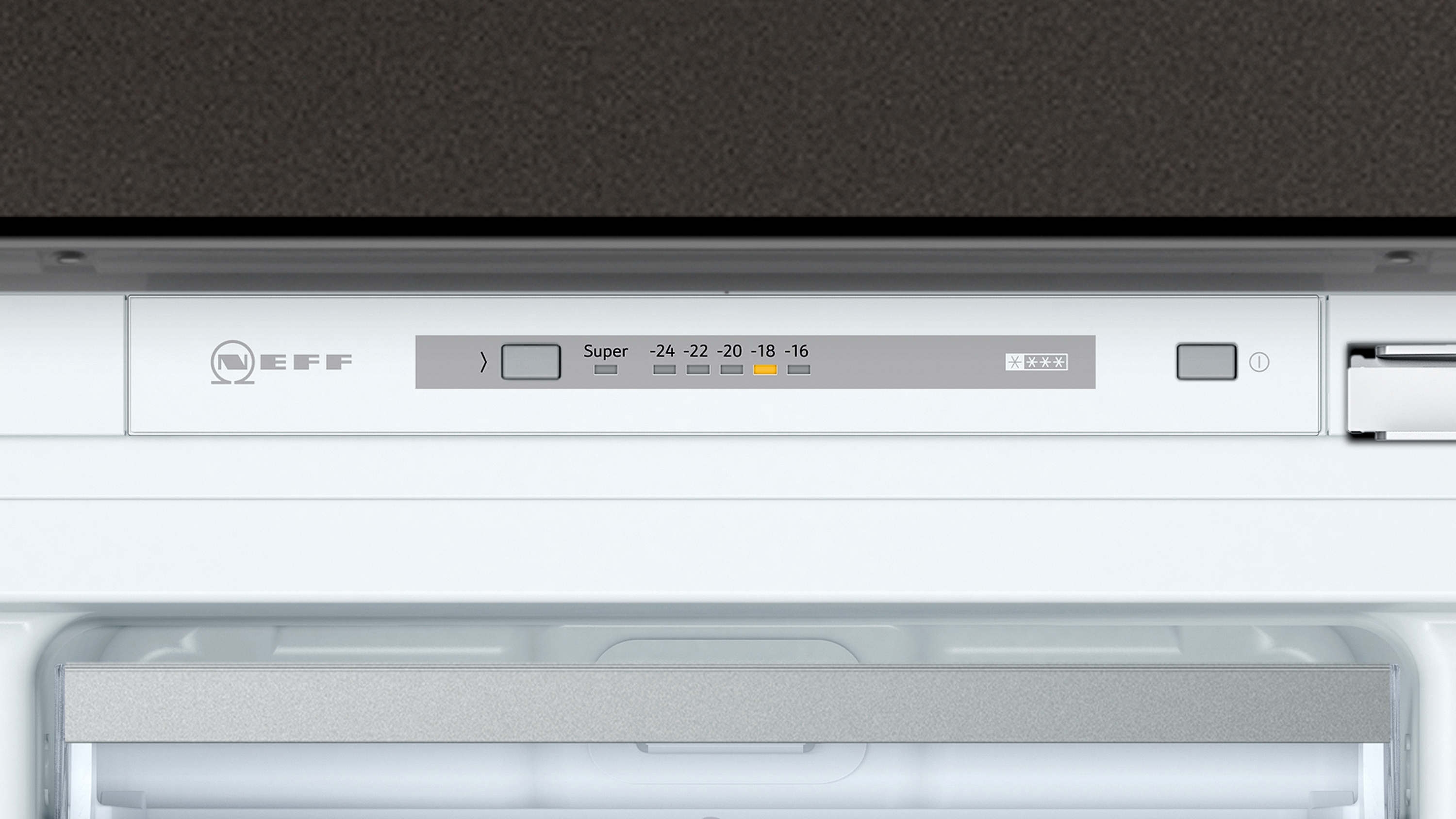 Der Einbau-Gefrierschrank warnt bei Temperaturanstieg und hat einen besonders niedrigen Energieverbrauch.