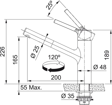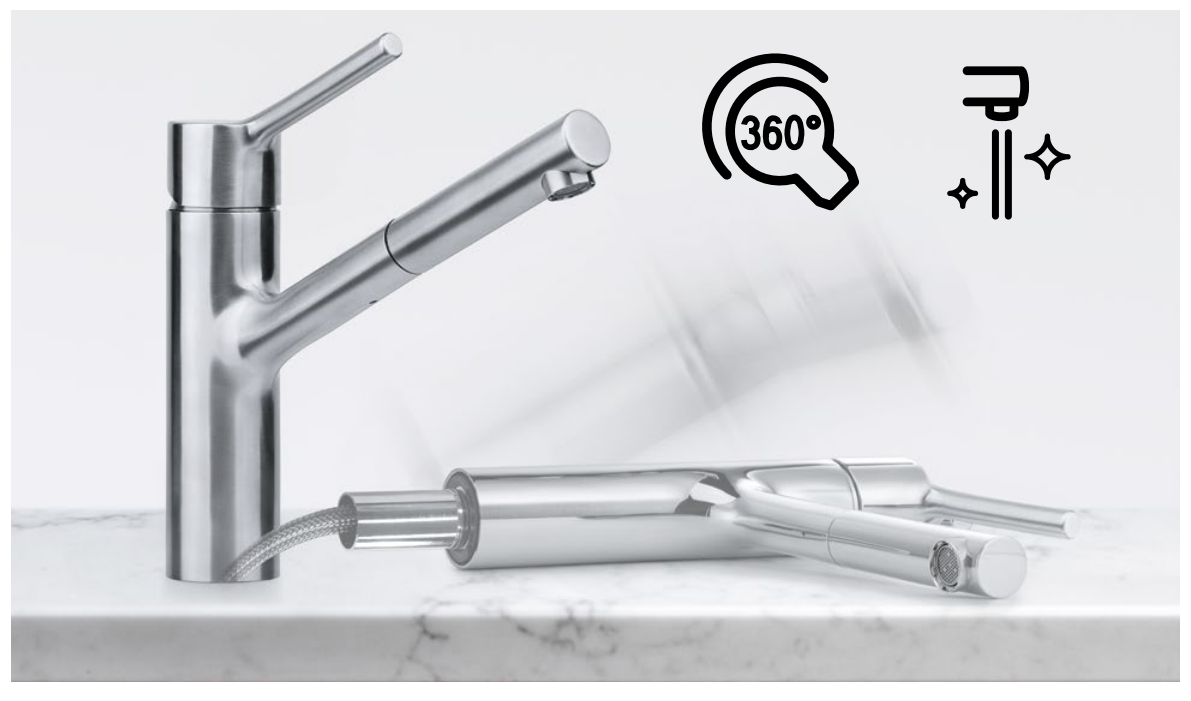 Hochdruck oder Niederdruck wählbar massiv Edelstahl Umlegbare massiv-Edelstahl Armatur Ausgestattet mit einem Laminar-Perlator Fugenloser Armaturenkörper, dadurch besonders reinigungsfreundlich Wasserspar-Kartusche mit Volumenschwelle Planungshinweise: Auslaufmenge Normalstrahl: 12 l/min. (3 bar) Flexible Anschlussschläuche mit 750 mm Länge und 3/8 Mutter für leichte und sichere Montage Wasserspar-Kartusche mit Volumenschwelle DVGW Zertifizierung vorgesehen