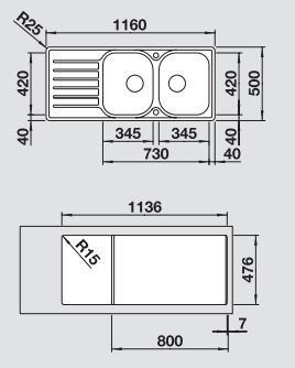 1160 x 500 mm