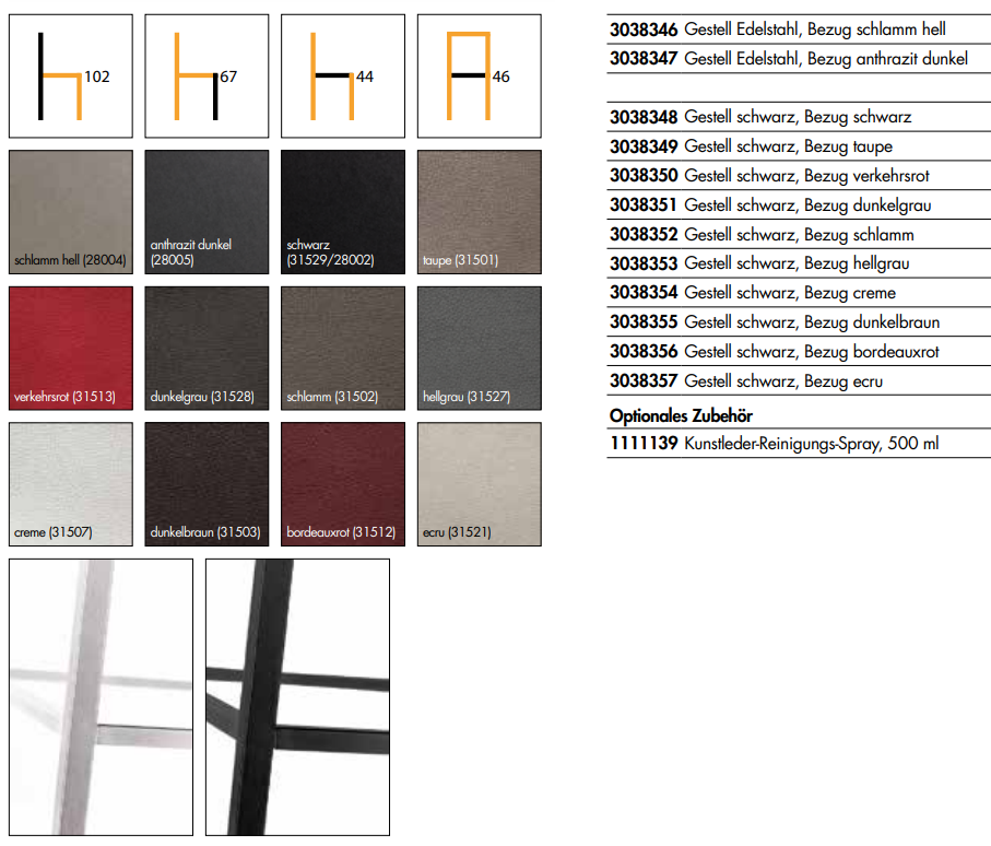 Sitz und Rückenlehne Kunstleder gepolstert - in diversen Farben erhältlich